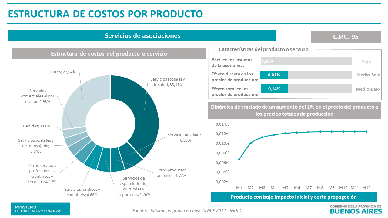 Análisis realizado a partir de la matriz insumo producto nacional para el año 2012, con productos/servicios a dos dígitos de la Clasificación de Productos Central (CPC). Se presenta la estructura de costos de cada producto/servicio y el efecto multiplicar directo y total de un aumento en un 1% en el precio de cada producto/servicio sobre los precios totales de la economía. Ver nota metodológica.