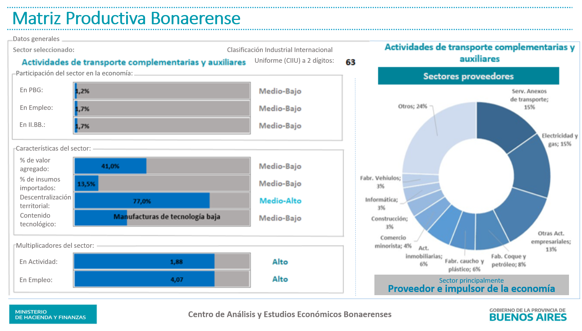 Análisis realizado a partir de la estimación de la matriz insumo producto nacional para el año 2012 y la participación bonaerense en los distintos sectores productivos. La clasificación de cada sector se definió en base a su desempeño en cada indicador respecto del resto de los sectores que conforman la matriz productiva bonaerense. La clasificación tecnológica se realizó en base a la clasificación propuesta por S. Lall. La clasificación del sector según su rol dentro de la economía bonaerense se realizó en base a sus encadenamientos productivos hacia adelante y hacia atrás, respecto del promedio de encadenamientos del total de sectores. Ver nota metodológica.